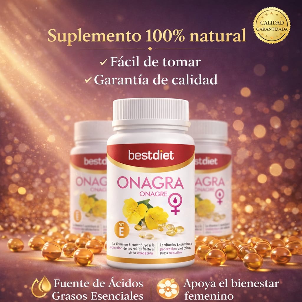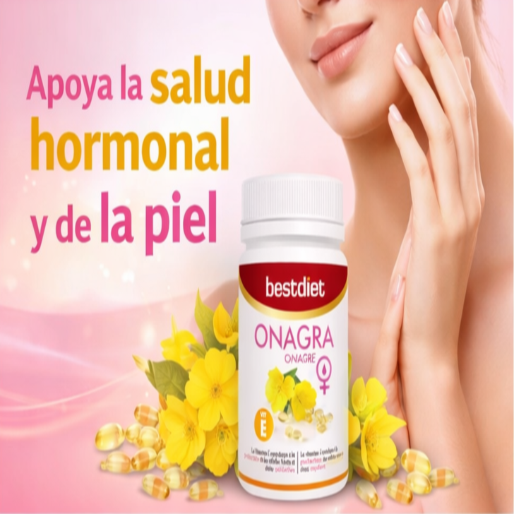Cuida tu equilibrio interior de forma natural con Onagra Bestdiet. Un complemento pensado para acompañarte en tu rutina diaria de bienestar femenino, con aceite de onagra y vitamina E.