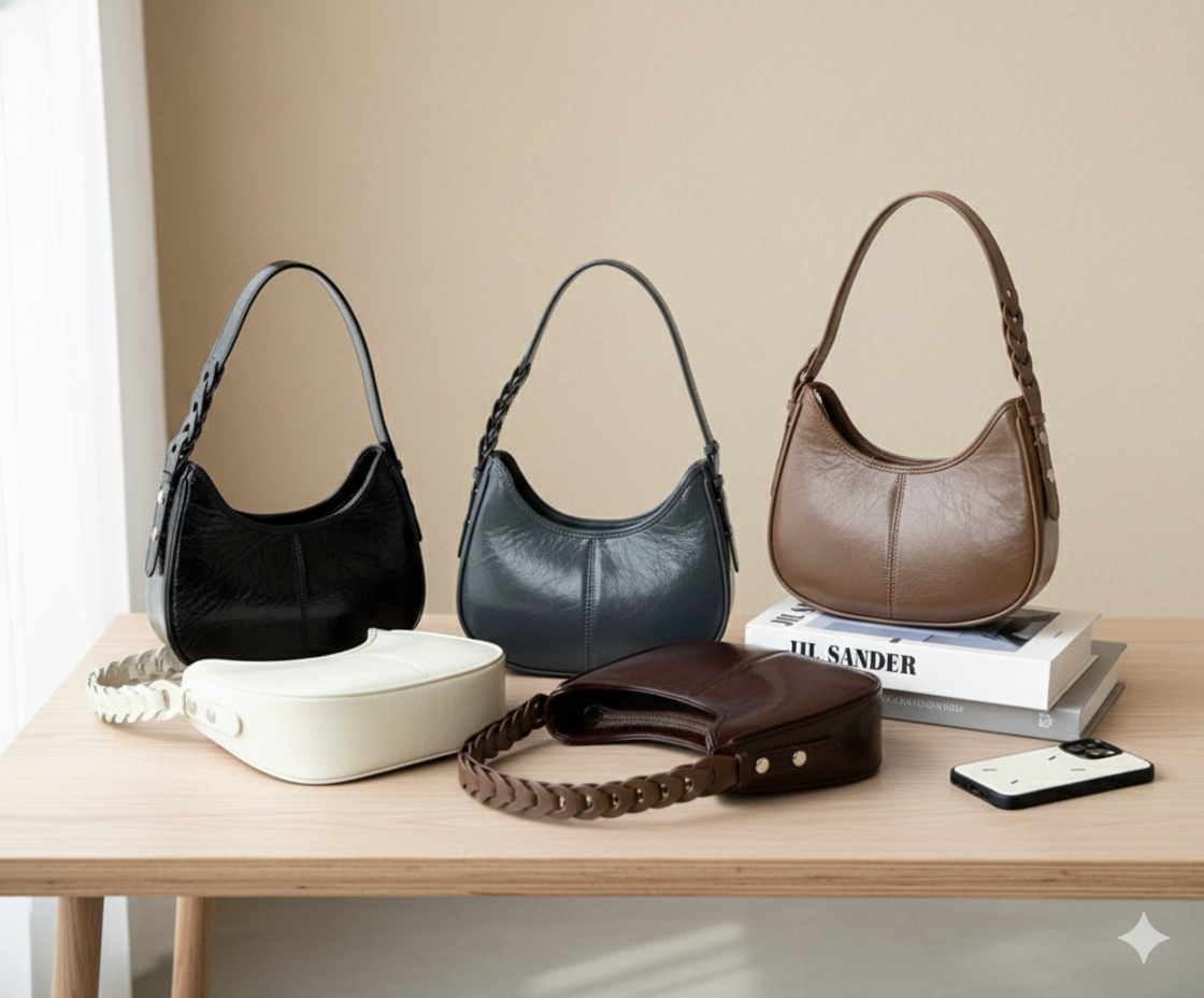 Acabado de Brillo Pulido: Cada bolso presenta un acabado encerado que resalta el grano natural de la piel, aportando un aire de lujo discreto y moderno.