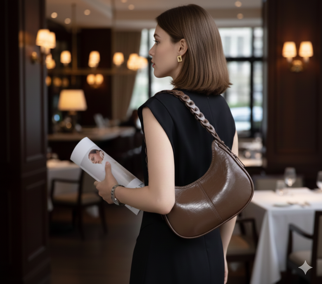 Diseño Ergonómico de Media Luna: Su silueta minimalista se adapta de forma natural a la forma del cuerpo, ideal tanto para eventos formales como para el ritmo urbano.