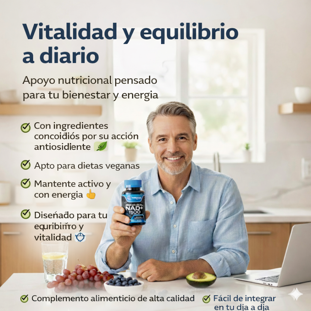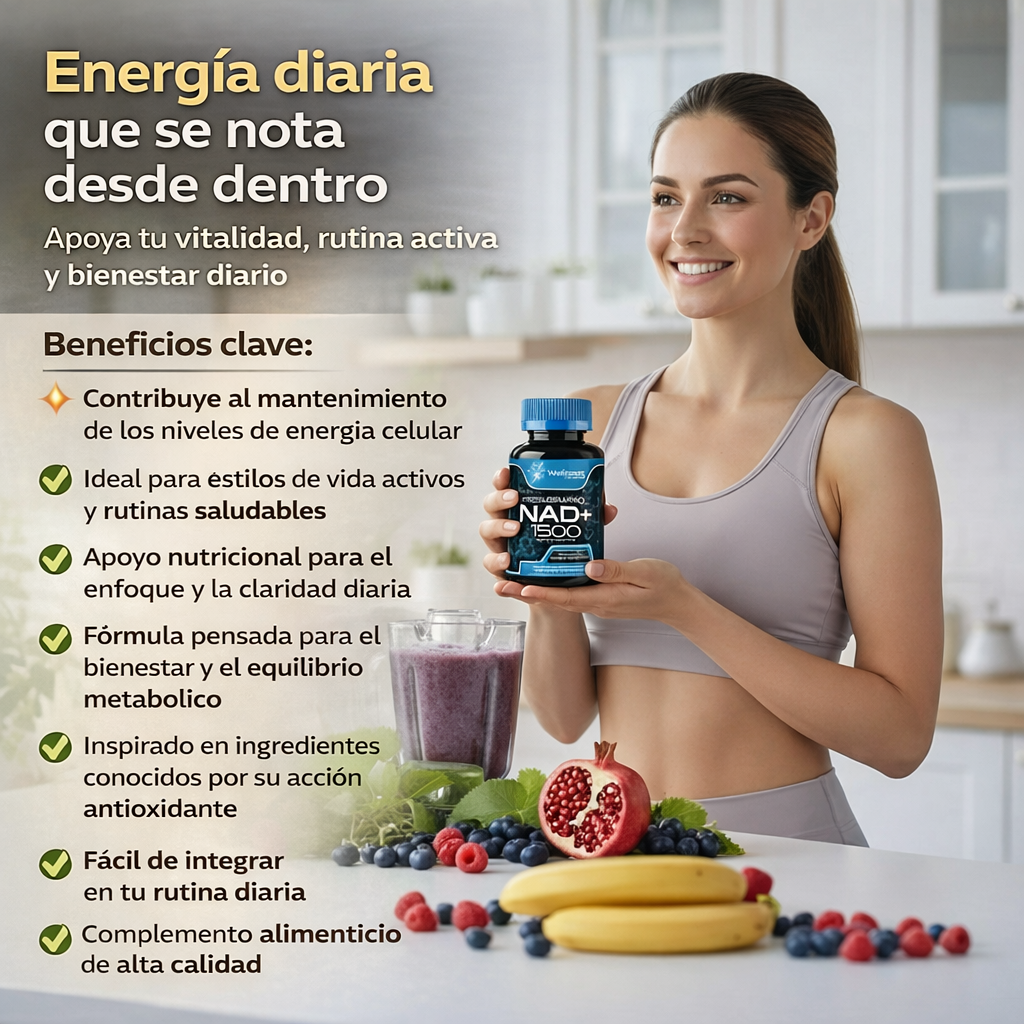 NAD+ 1500 es un complemento alimenticio formulado para quienes buscan mantener su vitalidad, apoyar su energía diaria y cuidar su bienestar desde dentro. Ideal para integrar fácilmente en tu día a día, especialmente si llevas un estilo de vida activo y consciente.
