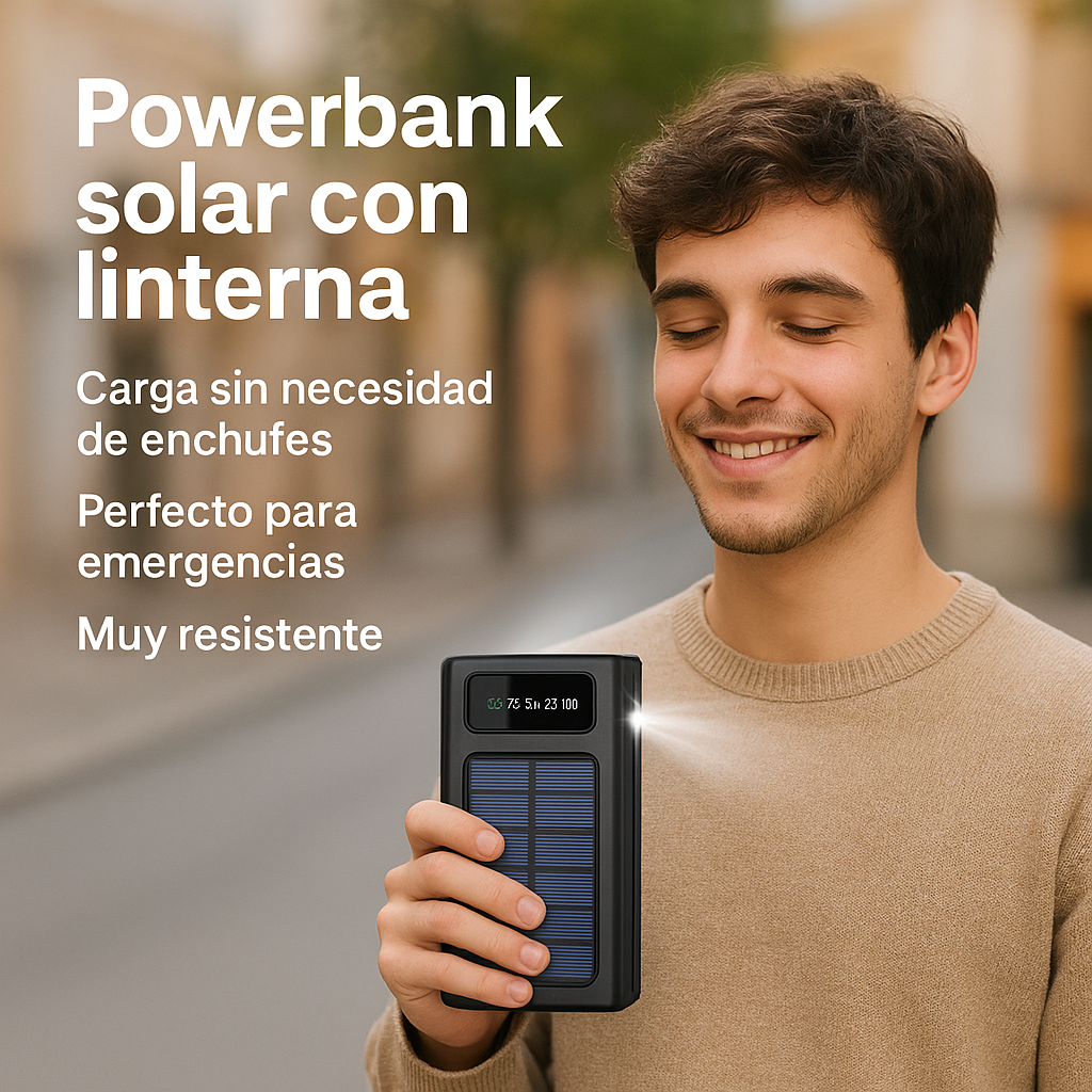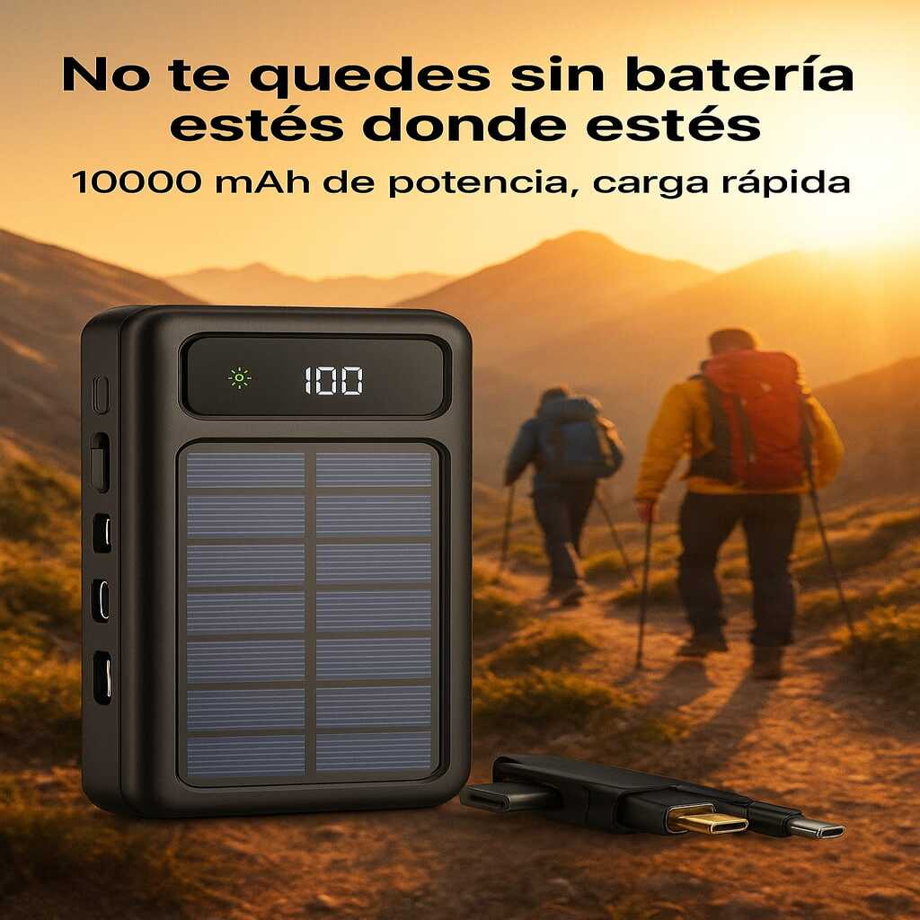 Mantén tus dispositivos cargados en cualquier lugar gracias a su panel solar y gran capacidad, ideal para viajes, campamentos o emergencias.