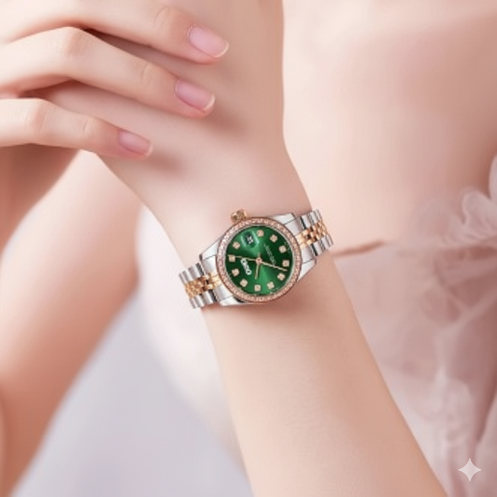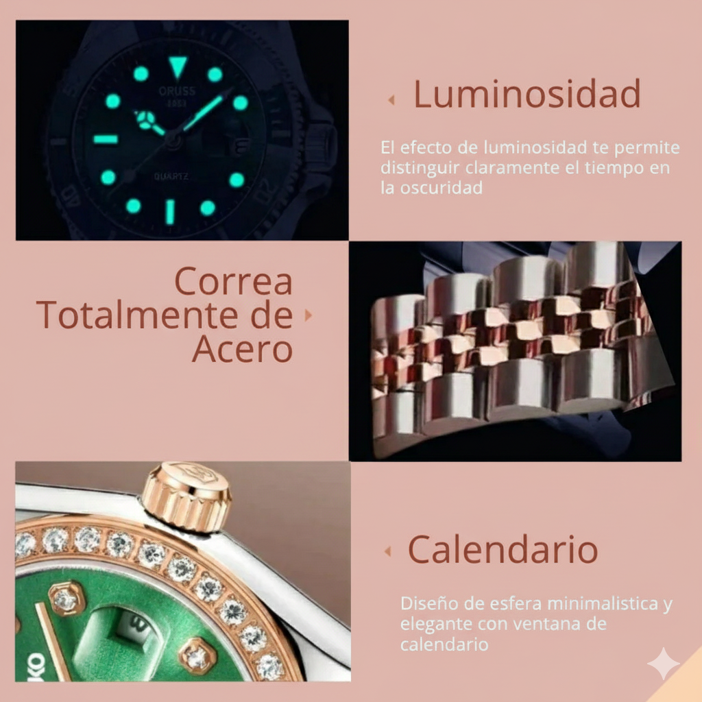 Fabricado con materiales de alta calidad, este reloj elegante está diseñado para acompañarte durante años sin perder su brillo ni su precisión.
